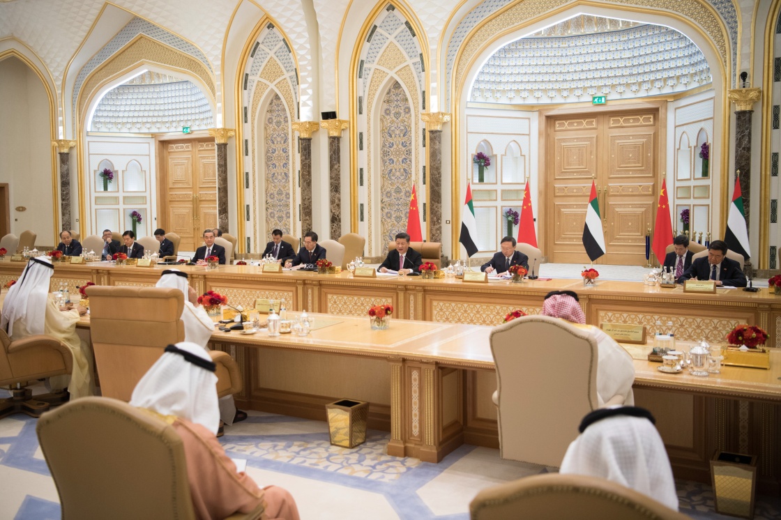 7月20日,国家主席习近平在阿布扎比同阿联酋副总统兼总理穆罕默德、阿布扎比王储穆罕默德举行会谈。李学仁 摄