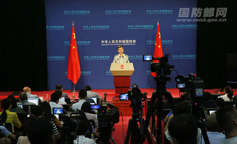 2018年8月30日下午,国防部召开8月例行记者会,国防部新闻局局长、国防部新闻发言人吴谦大校回答记者提问。 冯开华 摄