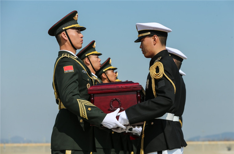 交接仪式于上午10时(北京时间9时)庄严举行,中国退役军人事务部副部长钱锋、中国驻韩国大使邱国洪、韩国国防部次官徐柱锡等参加。