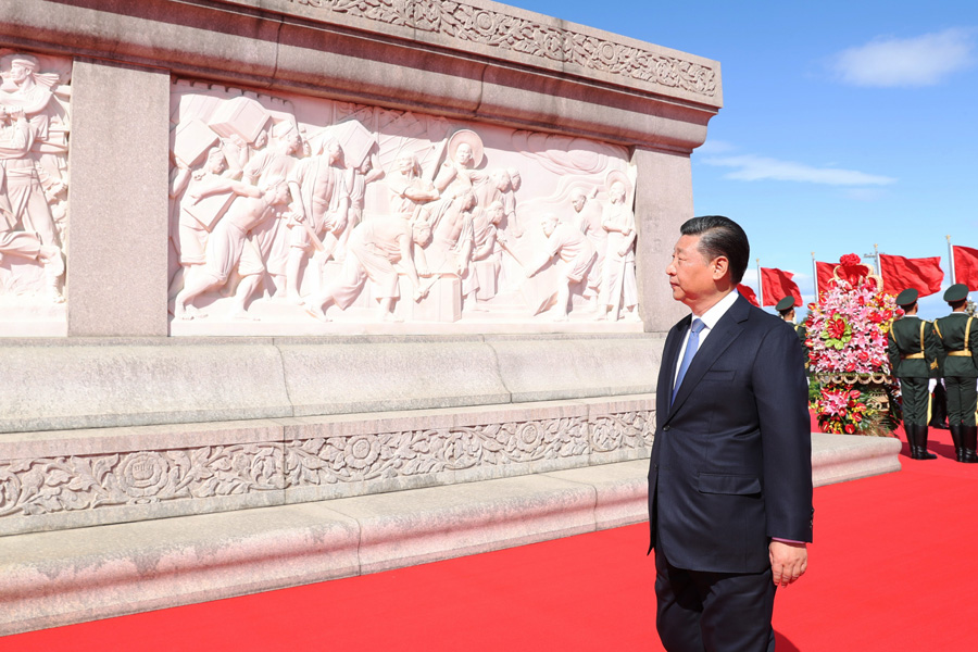 这是2018年9月30日上午,习近平瞻仰人民英雄纪念碑。 新华社记者黄敬文摄