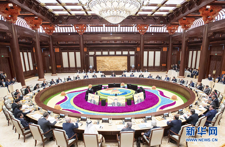 4月27日,第二届“一带一路”国际合作高峰论坛在北京雁栖湖国际会议中心举行圆桌峰会,国家主席习近平主持会议并致开幕辞。 新华社记者 李涛 摄