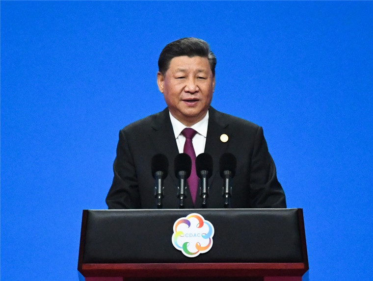 上午10时30分许,习近平和外方领导人共同步入会场。在热烈的掌声中,习近平走上主席台,发表主旨演讲。