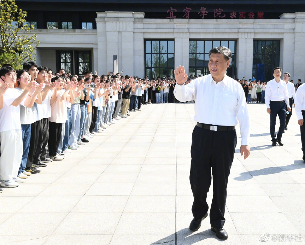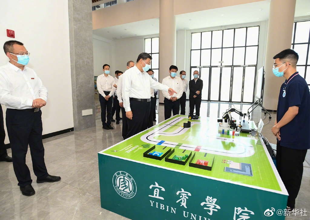 8日下午,习近平总书记在四川省宜宾市先后考察了三江口、宜宾学院、极米光电有限公司,了解长江流域生态修复保护、高校毕业生就业、企业自主创新等情况。(文字记者:张晓松、朱基钗;摄影记者:李学仁、姚大伟、谢环驰、申宏)