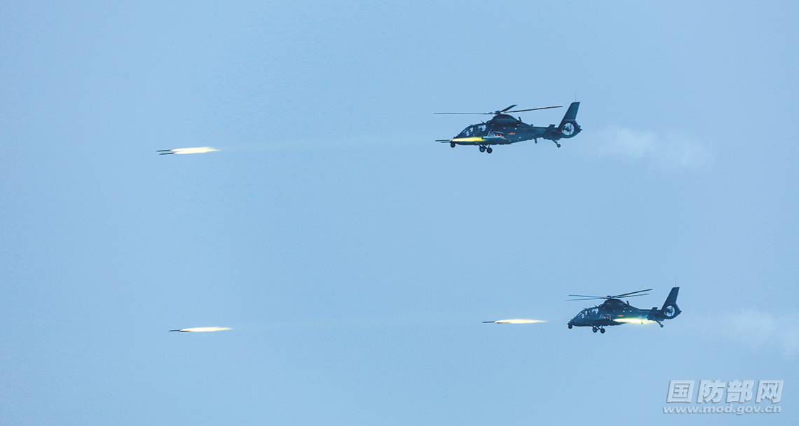 5月31日,晨曦初露,陆军某旅数架直升机铁翼飞旋、蓄势待发。接到塔台指令后,战机依次升空,组成编队飞赴目标海域,展开一场跨昼夜实弹射击演练。