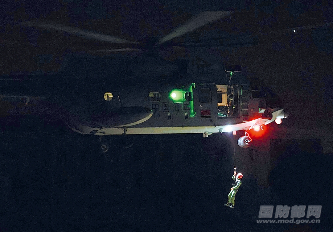 夜色如墨,机场上空轰鸣阵阵。“正前方10米……5米……”直升机搜救训练正在紧张进行。机长紧握驾驶杆缓慢调整战机姿态,平稳悬停。机组成员默契配合,绞车手放下钢索,搜救员克服下旋气流影响,携带救护装具快速出舱,下降到指定位置后,牢牢固定住目标,随即右手做出上升手势,顺利返回机舱。