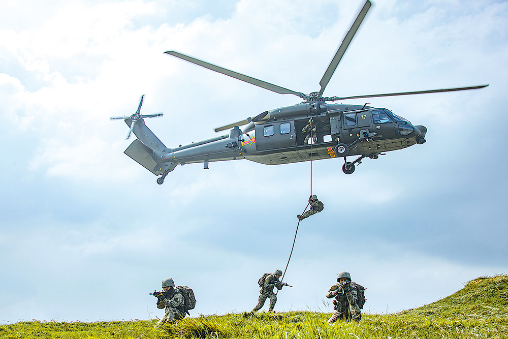 九月下旬,陆军某旅开展机降突击训练。图为官兵快速索降。黄振宇摄