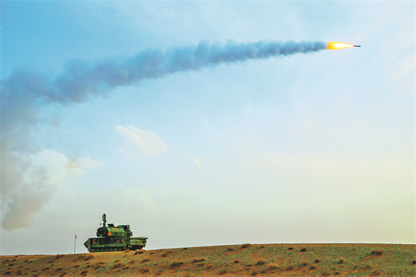 突然,屏幕上出现目标信号,数架“敌机”快速接近。雷达操作手持续跟踪、锁定目标,并将空情信息第一时间传送至指挥所和各火力单元。“放!”指挥员一声令下,一发发炮弹呼啸着破膛而出,直扑苍穹。霎时,密集火力在空中交织,目标应声而落。