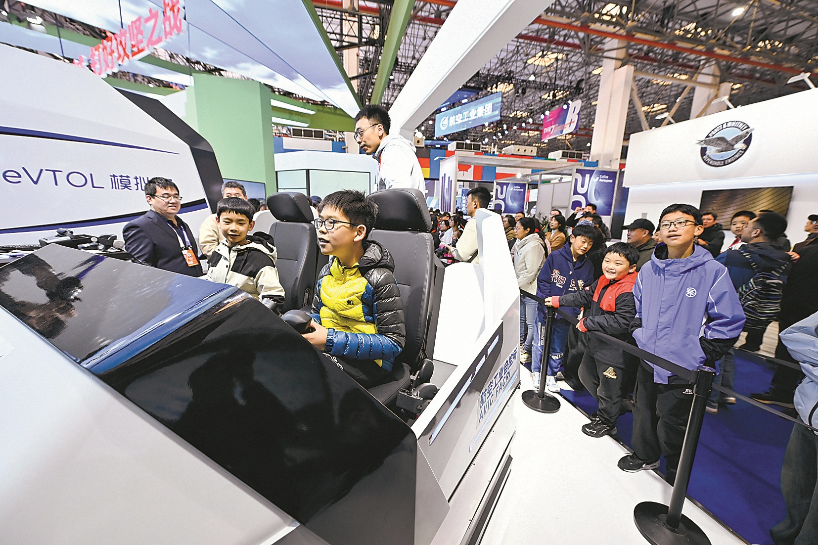 在本届天津直博会首次设立的低空经济馆内,多架造型别致的无人飞行器引人注目,参观者纷纷坐进一些“未来飞行器”内感受科技的魅力。