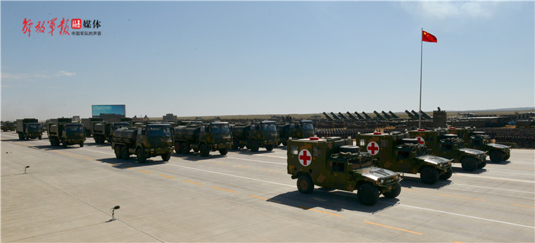 庆祝建军90周年阅兵后勤保障方队接受习主席检阅。岱天荣 摄