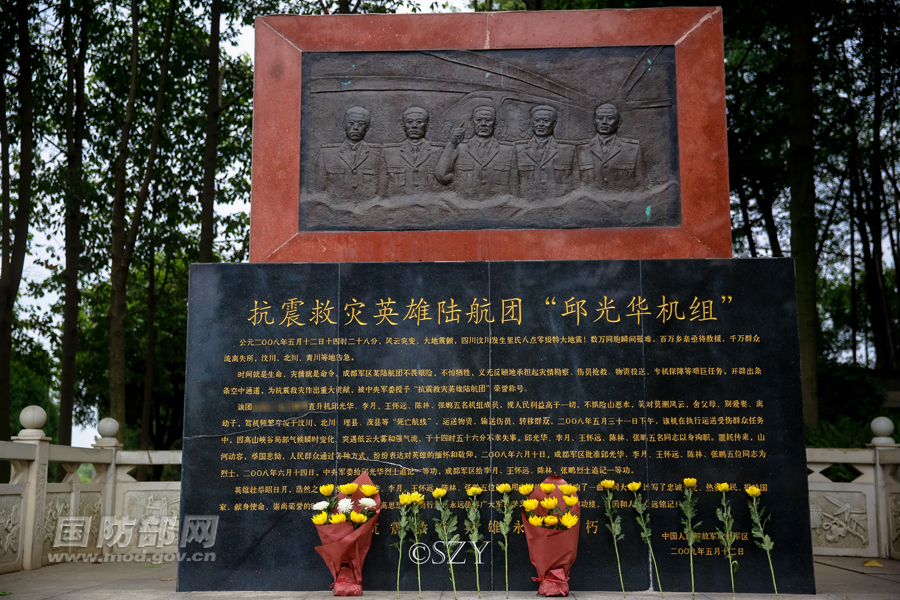 烈士陵园里抗震救灾英雄陆航团“邱光华机组”纪念碑。孙智英 摄