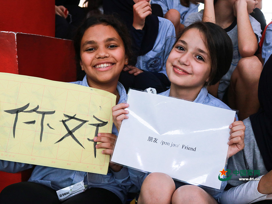 维和部队指挥长石鸿辉上校和卡德莫斯学校校长基恩·尤尼斯共同致辞并交换纪念品,维和部队向学校赠送了《习近平谈治国理政·英文版》。活动中,中国维和官兵为师生进行汉字教学,展示中国优秀传统文化:武术、书画、民乐等表演精彩纷呈,不时引来师生们的阵阵掌声。