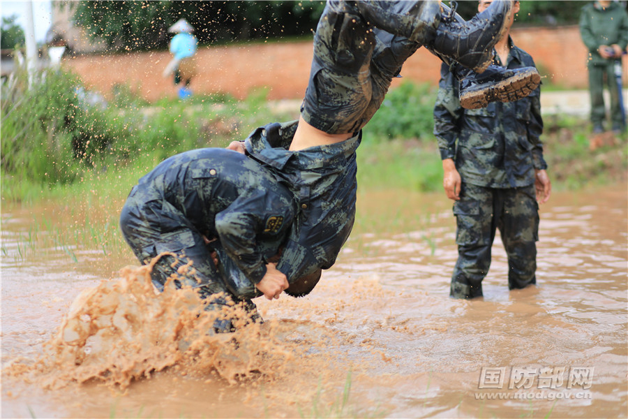 云南普洱:泥潭摔擒训练 磨砺武警特战队员血性