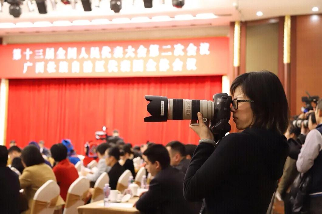 3月7日,广西日报-广西云客户端记者在广西代表团开放日上拍摄现场图片。
