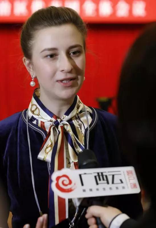 3月7日,广西日报广西云客户端记者在广西代表团开放日上采访中阿卫视艾琳娜。