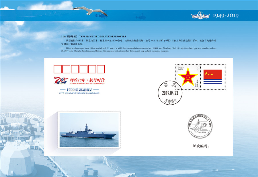 “辉煌70年-航母时代”纪念封第2枚——055型驱逐舰