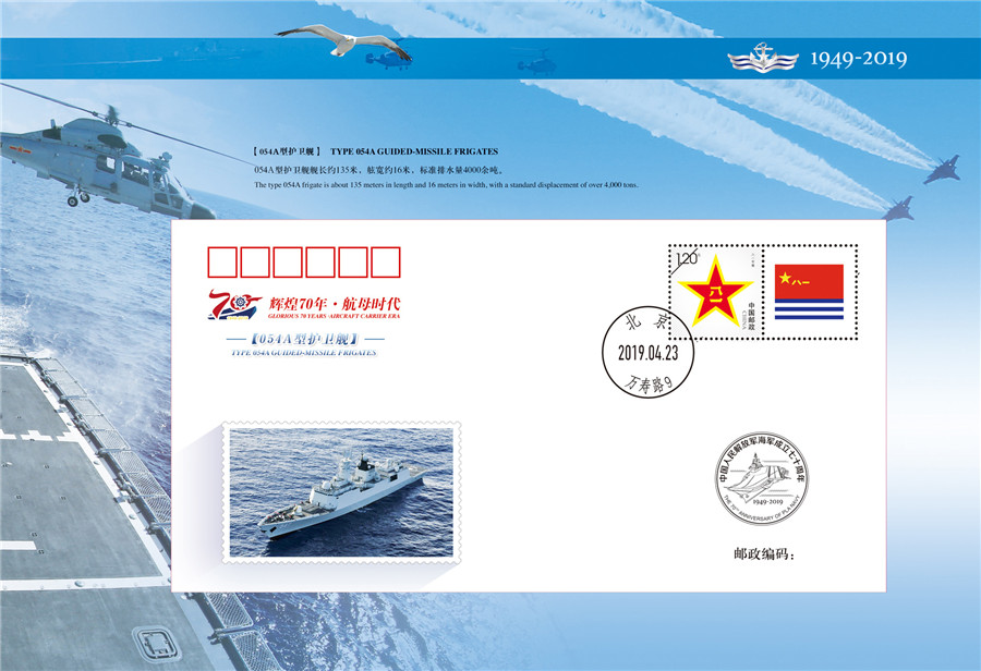 “辉煌70年-航母时代”纪念封第4枚——054A型护卫舰