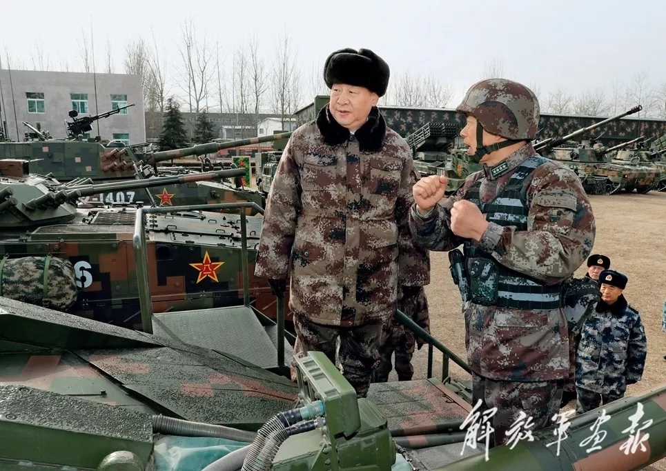 新年伊始,燕赵大地,生机盎然。3日上午10时30分许,习近平来到中部战区陆军某师。他首先察看了部队武器装备。数十台套数字化装备整齐列阵,威风凛凛,习近平边走边看,不时驻足询问。在地面突击系统装备前,习近平饶有兴致地登上99A 坦克。这是我国自主研制的新一代主战坦克,有“陆战之王”美誉。在火力打击系统装备前,习近平登上红箭-10 导弹发射车,详细了解装备战技性能。习近平强调,要抓住科技创新这个牛鼻子,把部队科技含量充分释放出来,把科技优势转化为能力优势、作战优势。