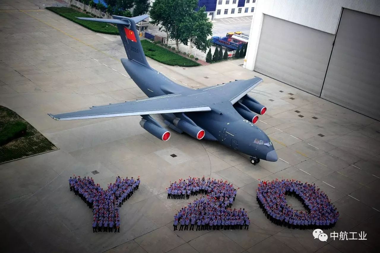 运-20研制团队摆出“Y20字样”庆祝“胖妞”出生。