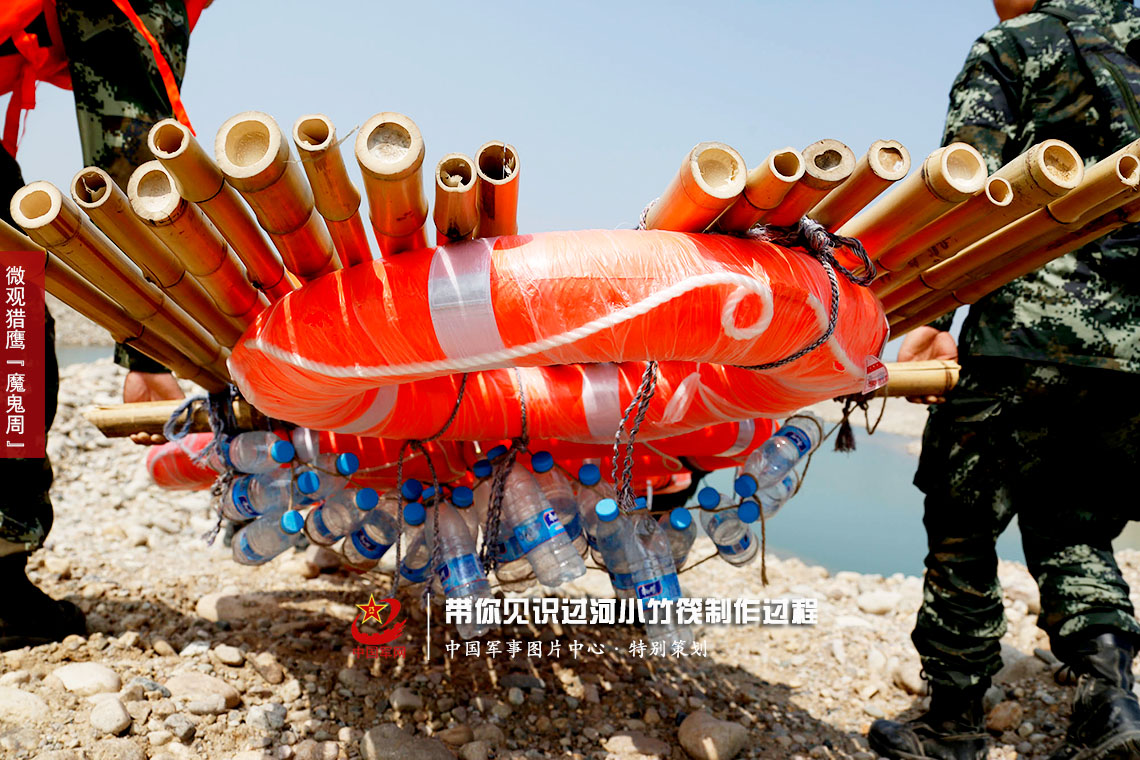 “魔鬼周”极限训练,有许多常人难以想象的课目和突发难题,考验着特战队员的体能、技能、智能和心里素质。他们不仅要承受并坚持下去,更要学会如何科学灵活地处置实际问题。这不,参训的猎鹰突击队特战队员们又遇到了“难为无米之炊”的困境:没有船怎么过河?按照导调员下达的任务要求,他们需要在40分钟内利用废弃矿泉水瓶、竹竿等一切眼前可用材料,制作出一艘至少能承载一人重量的载具,达到战场应急的实际需要。记者在现场观看了全过程,发现原来矿泉水瓶还有这用途,get到了一项新的野外生存技能。现在开始划重点了,详细步骤图如下。