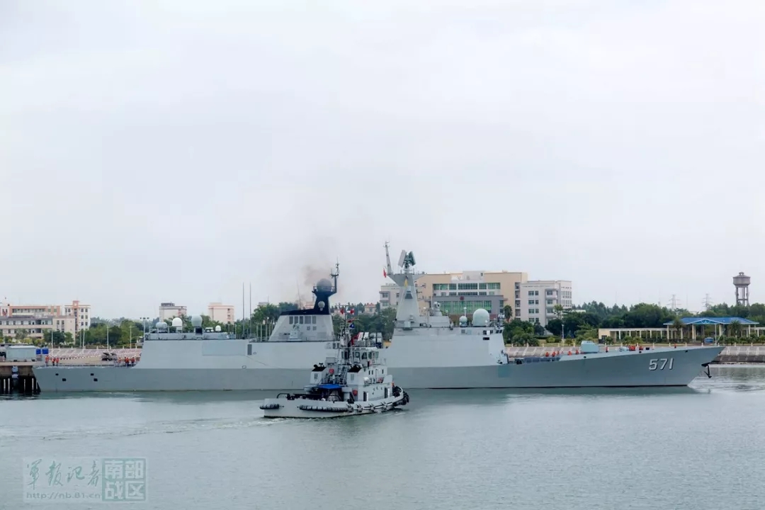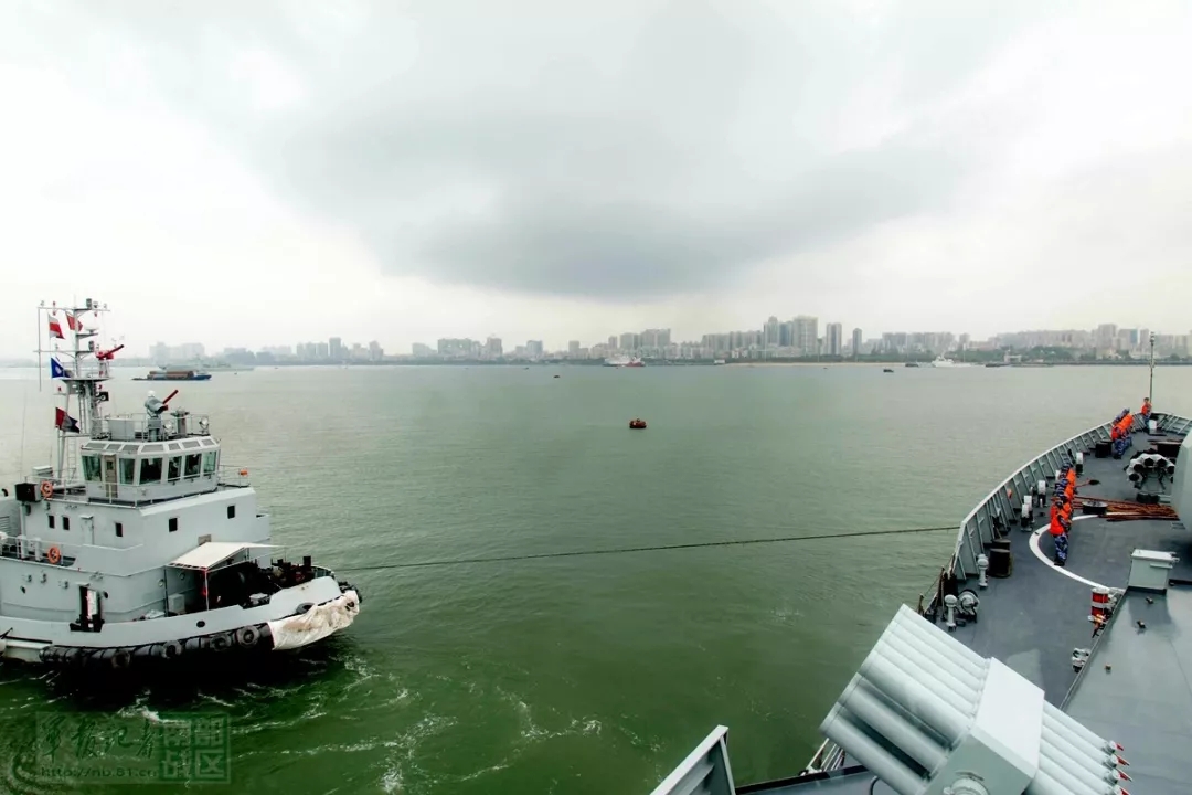 10月14日上午8时许,中国海军导弹驱逐舰武汉舰和导弹护卫舰运城舰各携一架直升机,从广东湛江某军港解缆起航,赴马来西亚参加中马泰“和平友谊-2018”联合军事演习。