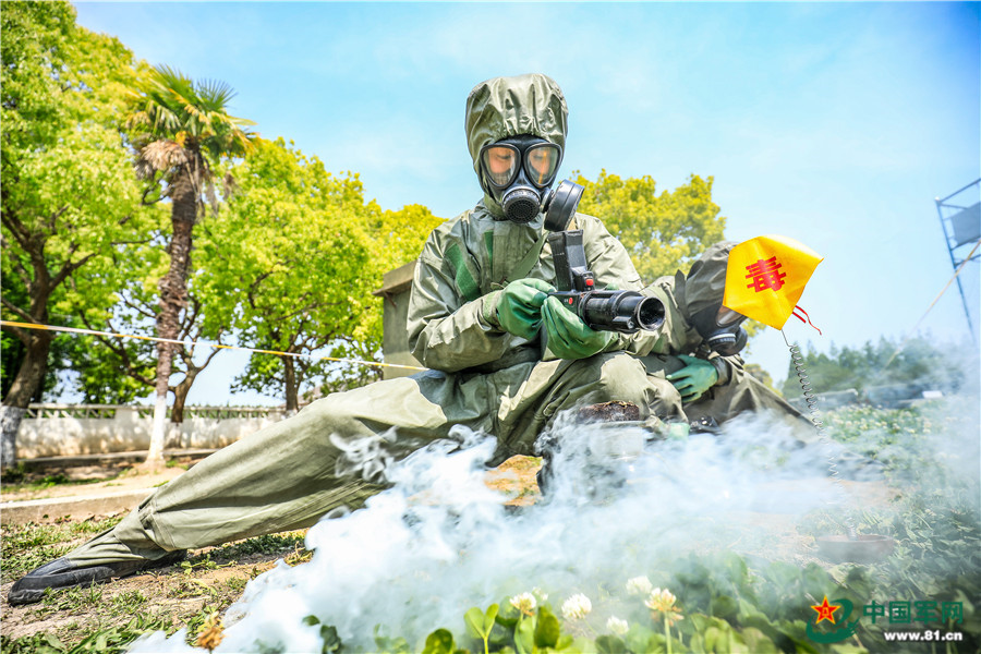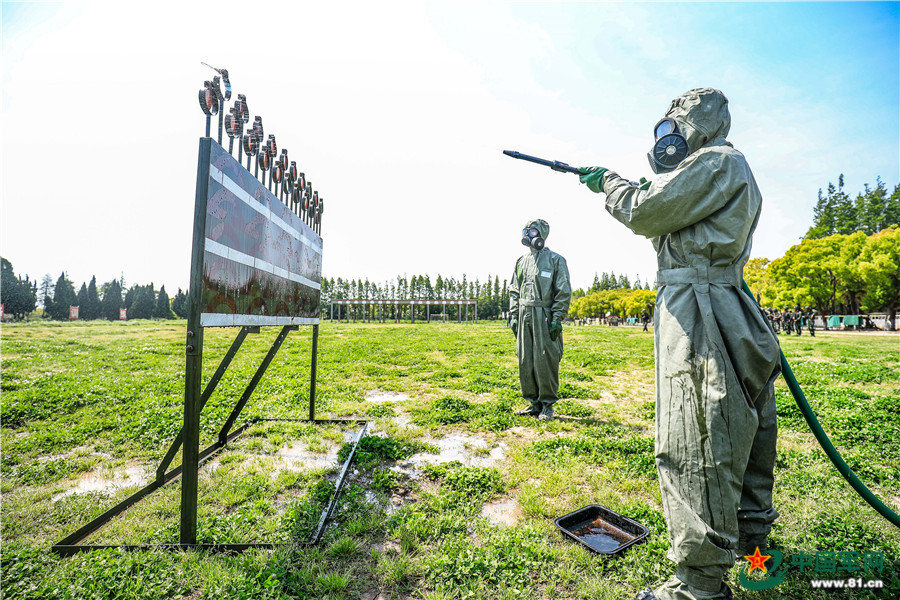 防化洗消员进行打点打线训练。李岩 摄