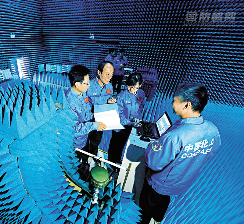 2013年10月,为保证北斗系统终端满足入网工作要求,技术人员在微波暗室里对关键器件进行反复测试、调试。王安民摄