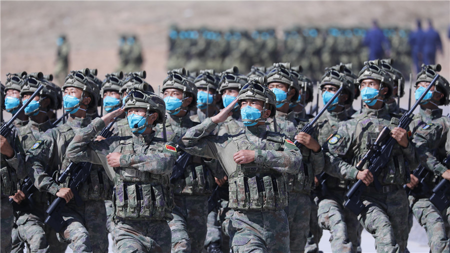 8月9日拍摄的“西部·联合-2021”演习开始仪式现场。 新华社记者 刘芳 摄