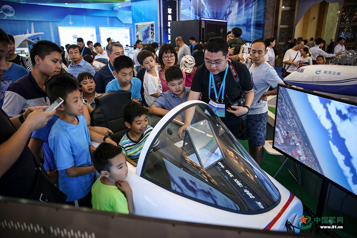 家长陪孩子体验军机作战飞行模拟器。冯开华 摄