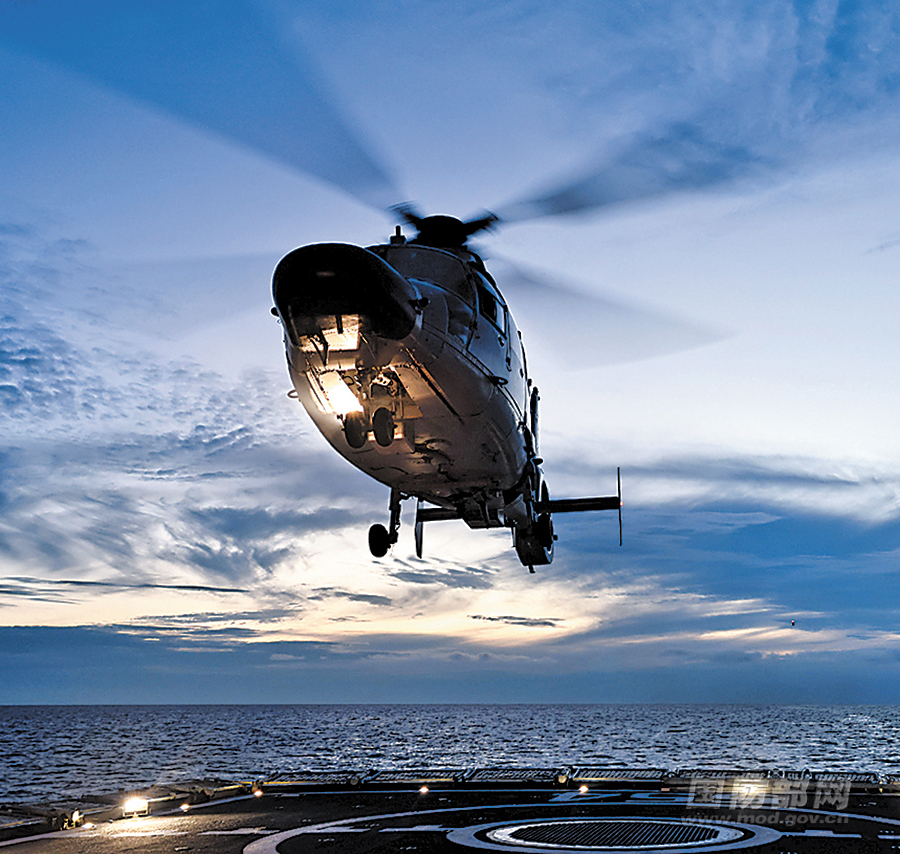 入夜,青海湖舰正在进行损管训练,突然接到应召补给任务。该舰立即由训转战,调整航向驶向另一海域……