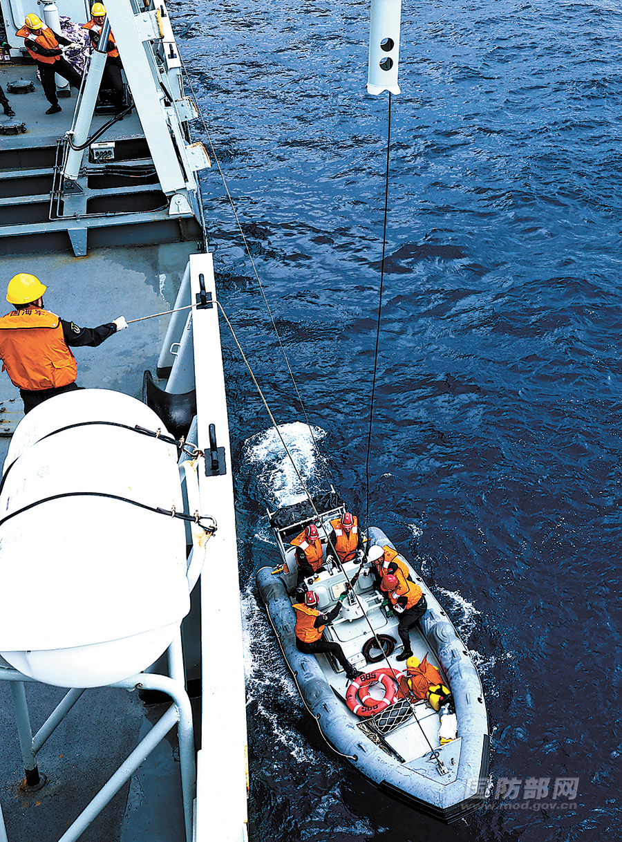 吊放小艇,开展搜救。