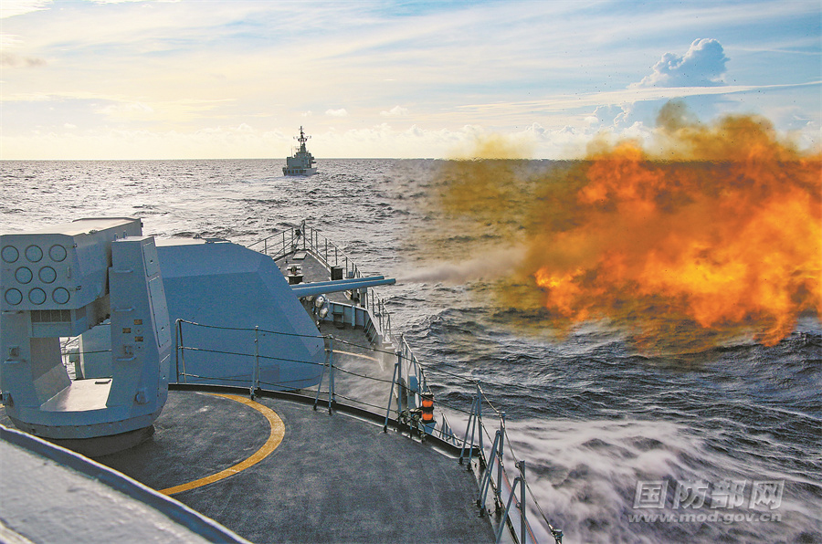主炮对海射击。梁张明摄