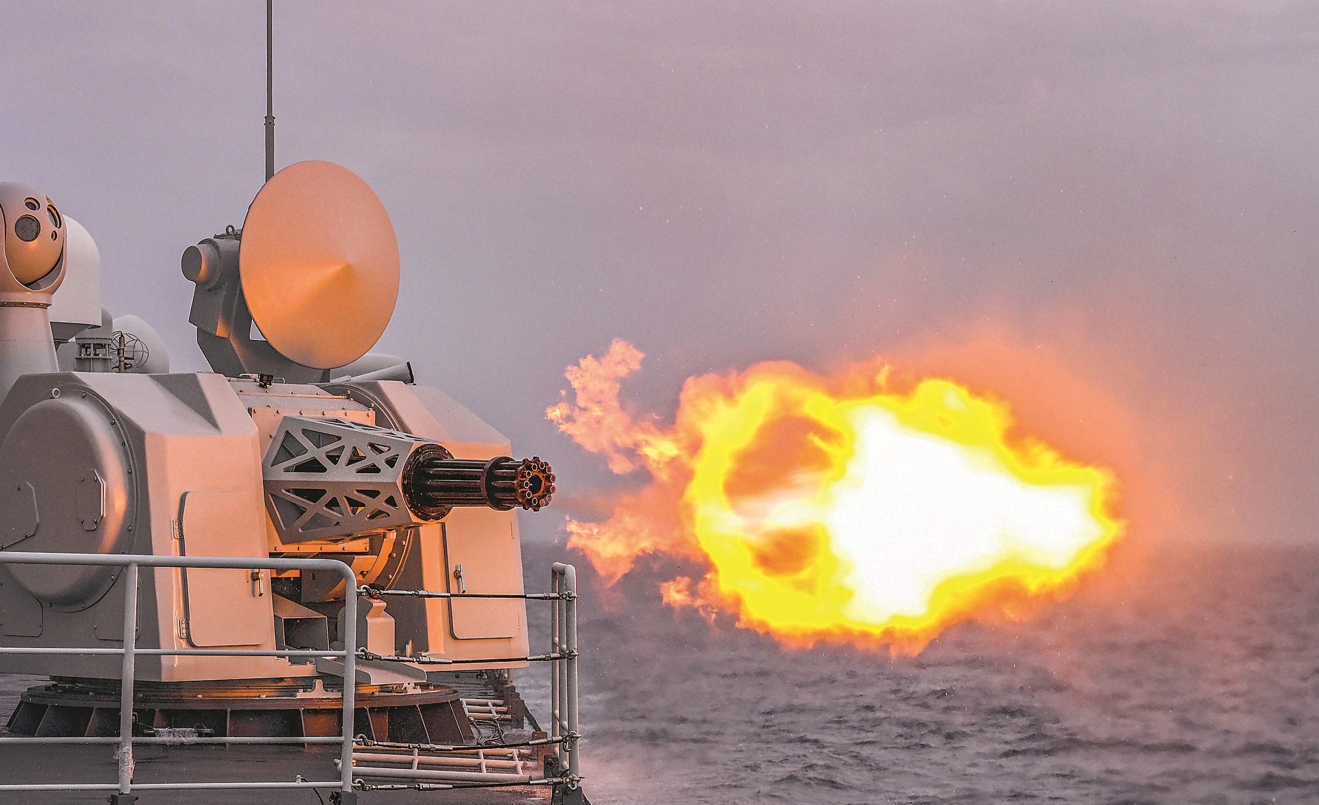 副炮打击海上目标。