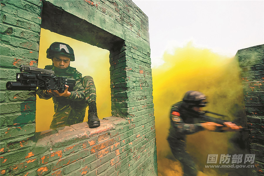 开展楼房突击作战演练。