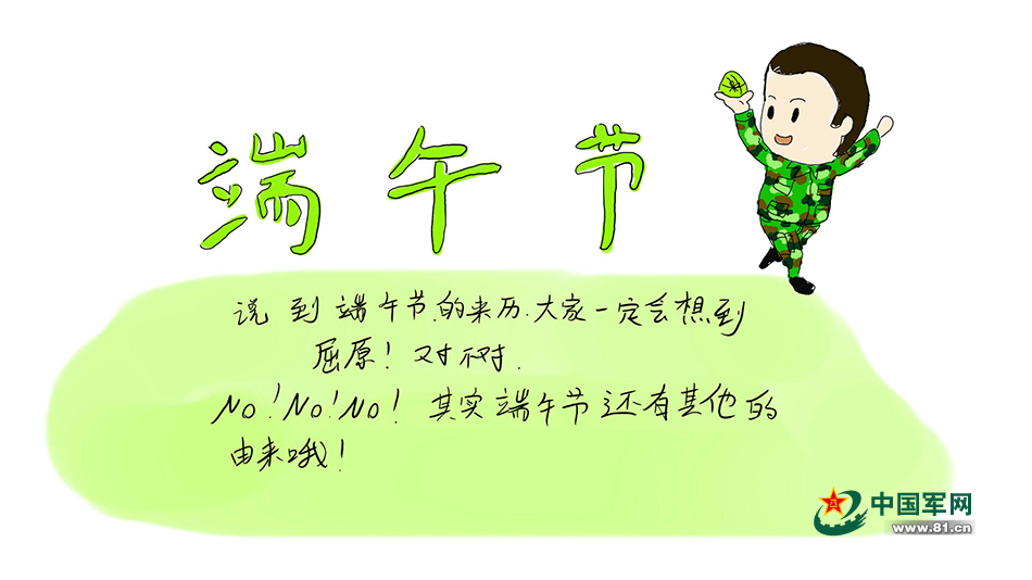 很快就到了一年一度的端午节,也是我们常说的“粽子节”,可是战友们除了知道屈原的故事,一定不知道端午节更多的由来,就让漫小兵带大家一起走进端午节吧!