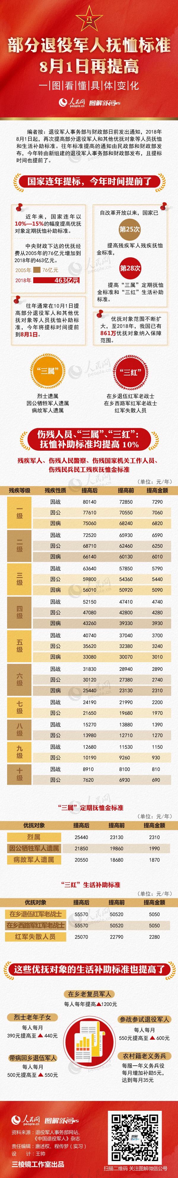 部分退役军人抚恤标准8月1日再提高,一图看懂具体变化