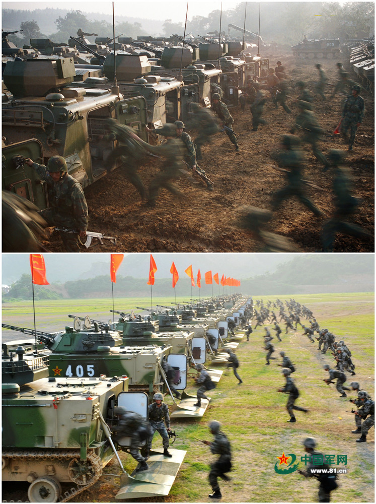 上:2006年演习,官兵快速登车准备战斗。