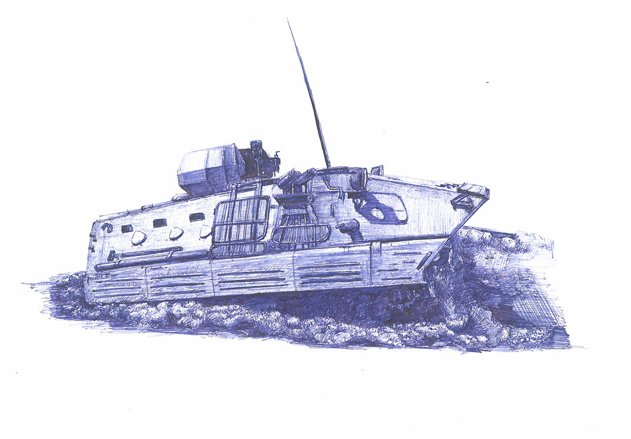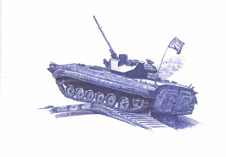 战士画笔下的“铁甲雄风”,展示的不仅是他的才情与灵感,更是他对战车的热爱、对军旅的热爱。威武!