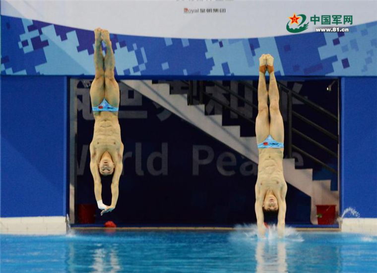 中国军网武汉10月25日电(记者王传顺、乔楠楠)10月25日晚,在武汉举行的第七届世界军人运动会跳水项目男子双人跳台决赛中,中国组合练俊杰杨昊实力出众、配合默契,以454.26分的成绩夺得冠军。