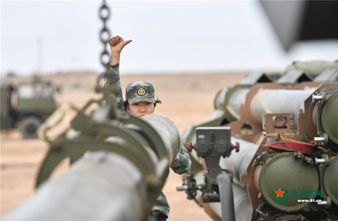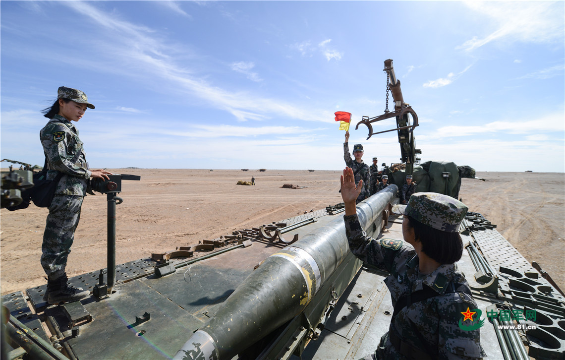 茫茫戈壁,一望无际,女子远火排官兵在烈日下严密协同,展开弹药装填训练。