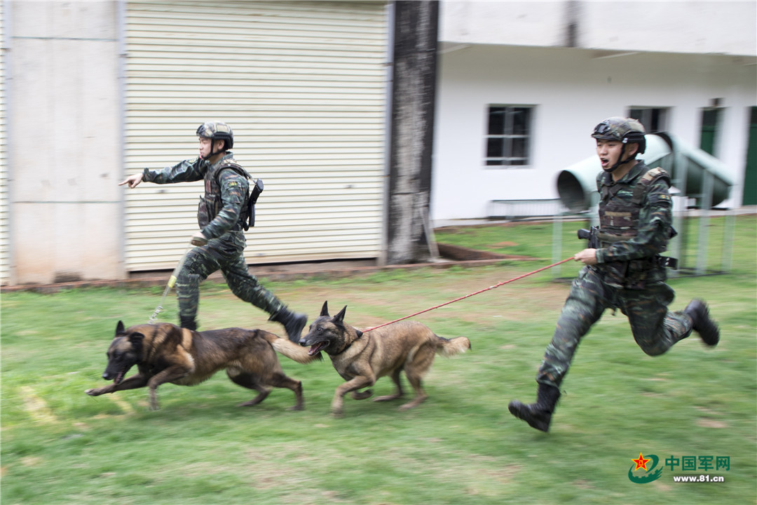 4月2日,武警广西总队机动支队组织训导员携军犬开展战术越障、协同追击、侦察搜索等课目强化训练,进一步锤炼军犬的服从能力和技战素养,为遂行多样化任务奠定基础。