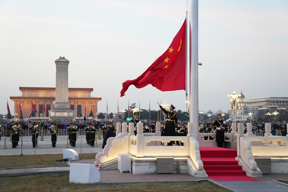 1月1日晨,北京天安门广场举行隆重的升国旗仪式。 新华社记者 鞠焕宗 摄