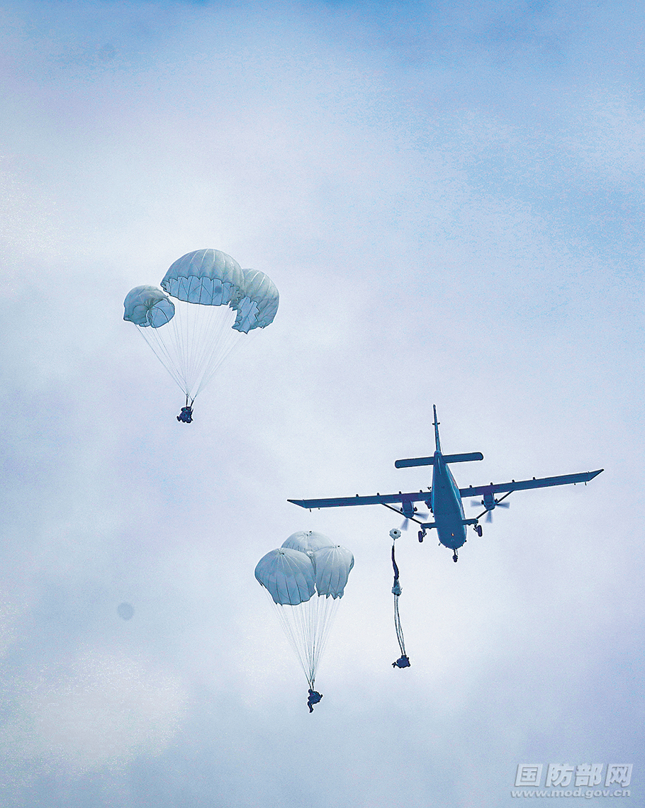 演练中,该旅按照“全流程、全要素、全员额”要求,先后实施编队空投、低空伞降、人员集结、要点夺控等空降作战行动,紧贴实战锤炼打仗本领。