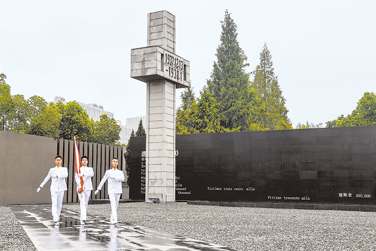 9月3日,侵华日军南京大屠杀遇难同胞纪念馆举行升国旗仪式,撞响和平大钟,纪念中国人民抗日战争暨世界反法西斯战争胜利74周年。新华社 发