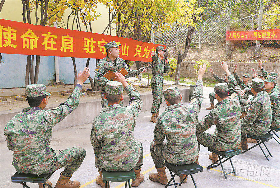 “山知道我,江河知道我……”火箭军某旅文艺小分队队员庄子仪一首《祖国不会忘记》,让深山哨所的官兵为之振奋鼓舞。