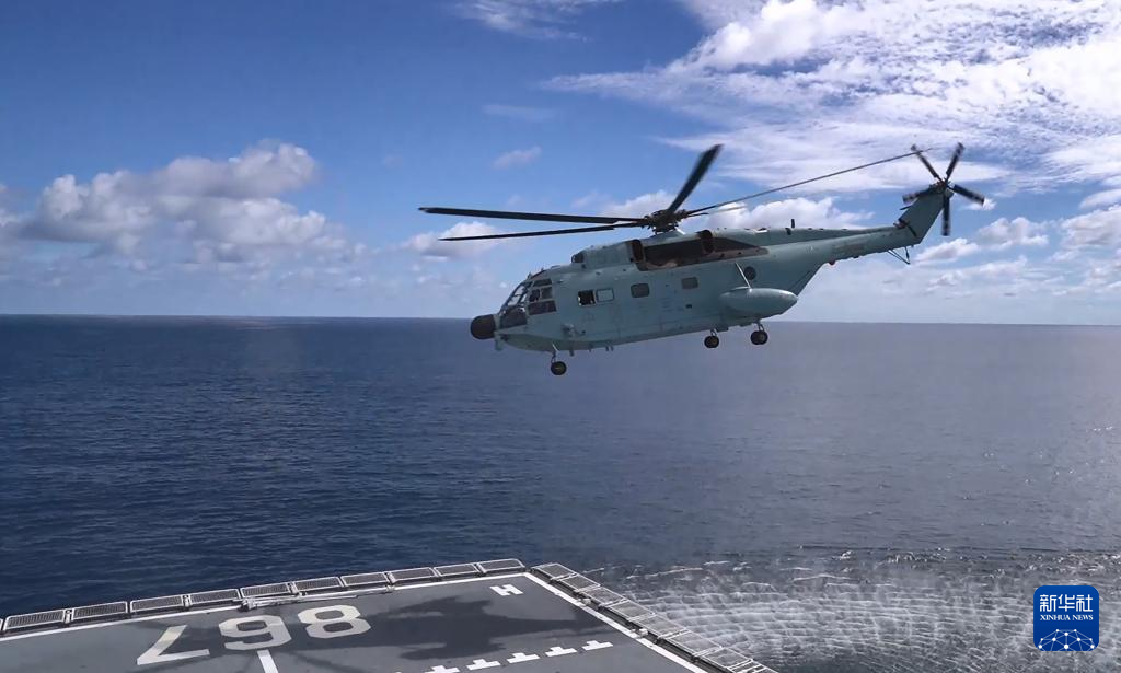 9月23日,舰载直升机从中国海军“丝路方舟”号医院船上起飞。新华社发