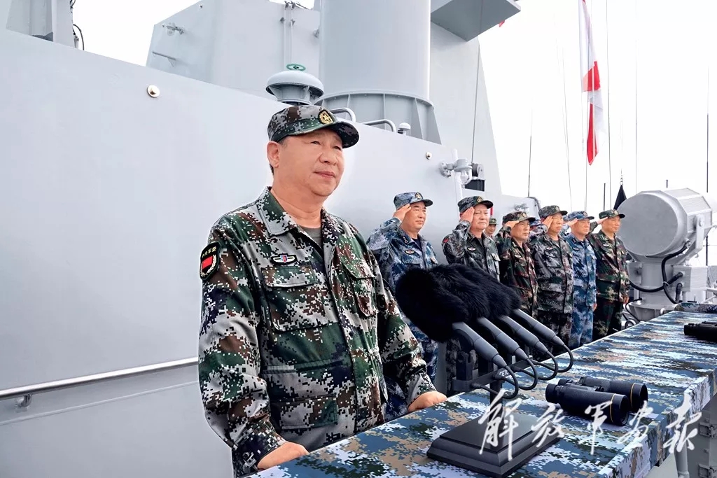 4月12日上午,中央军委在南海海域隆重举行海上阅兵,展示人民海军崭新面貌,激发强国强军坚定信念。中共中央总书记、国家主席、中央军委主席习近平检阅部队并发表重要讲话。这是习近平检阅海上编队。