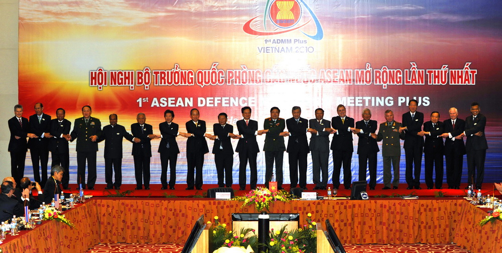 2010年10 月,中国参加在越南河内召开的首届东盟防长扩大会议,与会18个国家的防务部门领导人签署联合声明。
