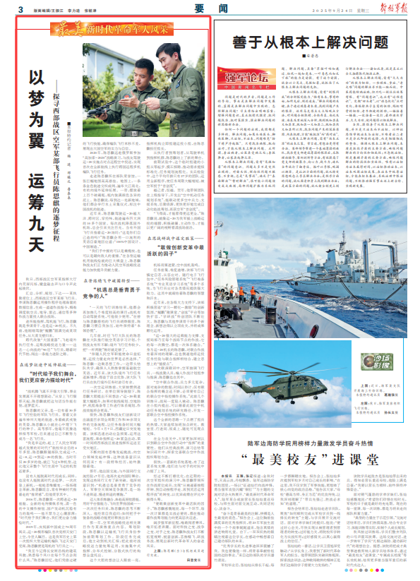 迈入体系练融合、奔赴高原挖潜能、用好平台强能力、飞向世界扬国威……一次次任务归来,陈思麒的思考不断深入。他经常自我追问:如何把手中装备的战略功能更好释放出来?