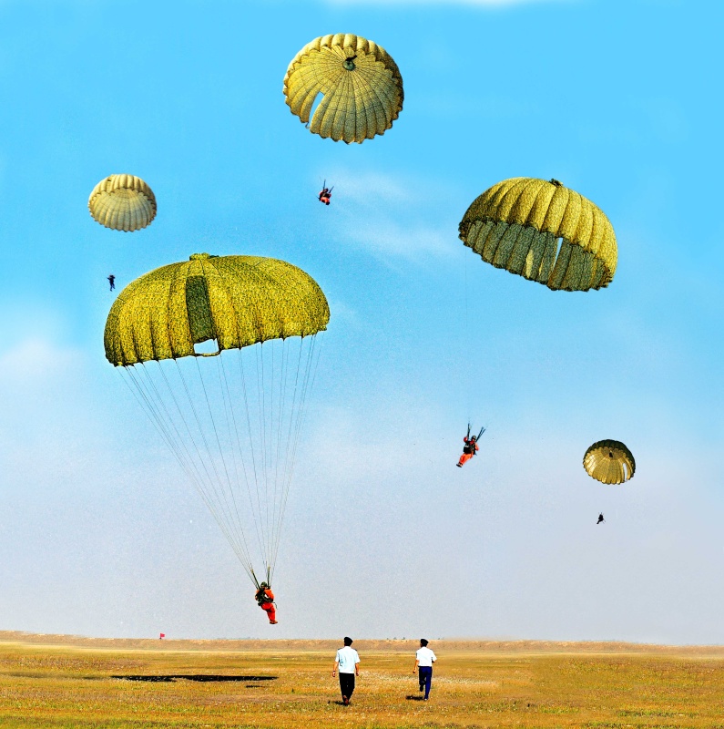 2001年6月,航天员在湖北进行跳伞训练。新华社发 朱九通 摄