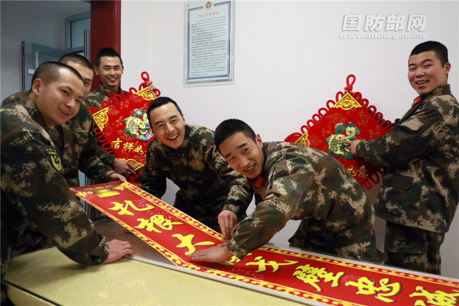 武警甘肃总队执勤支队派出专人为单独执勤点官兵运送新鲜蔬菜、海鲜以及对联、红灯笼、连心结等生活物资。